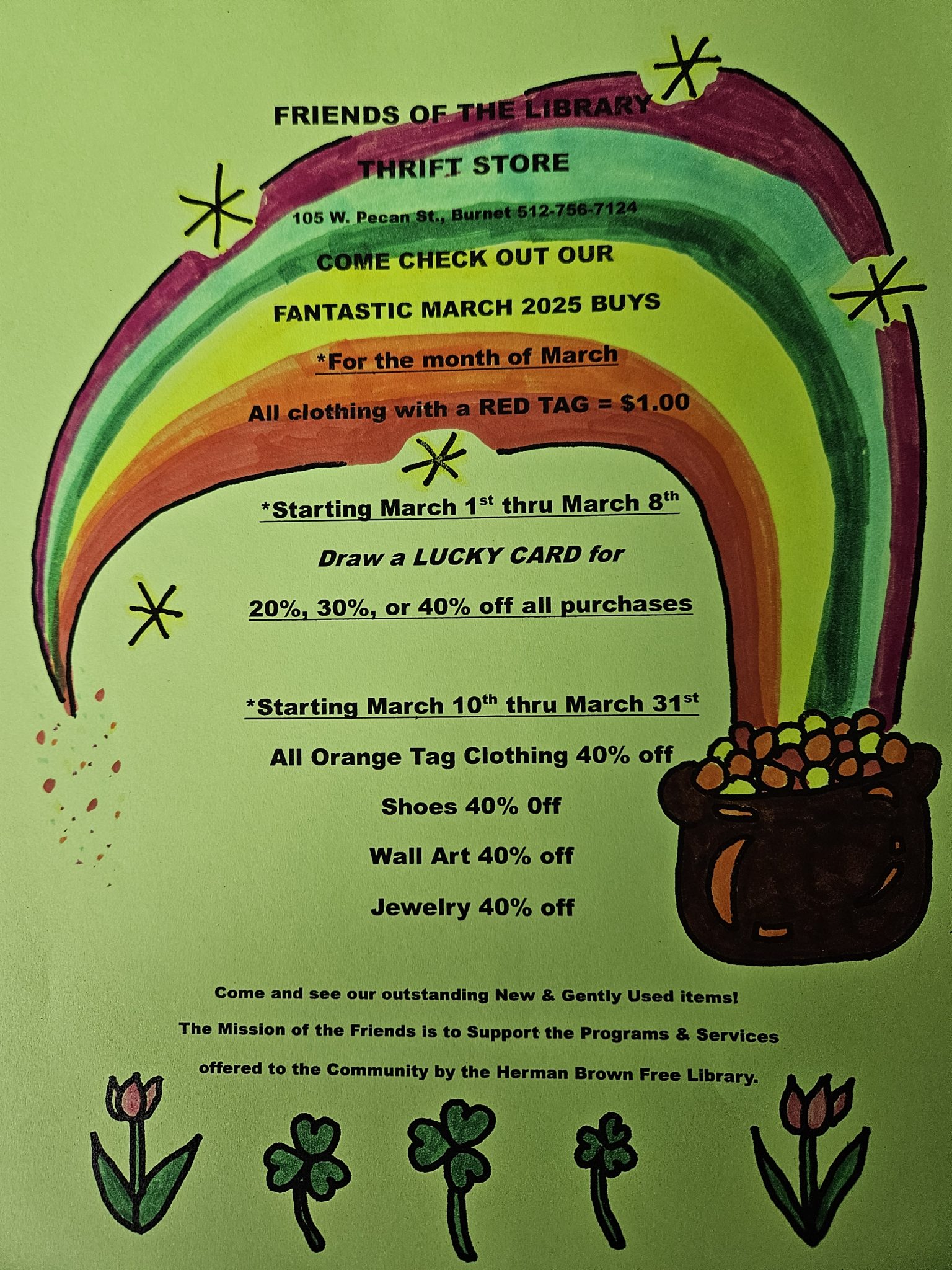 March Sales Friends of the Library Thrift Store