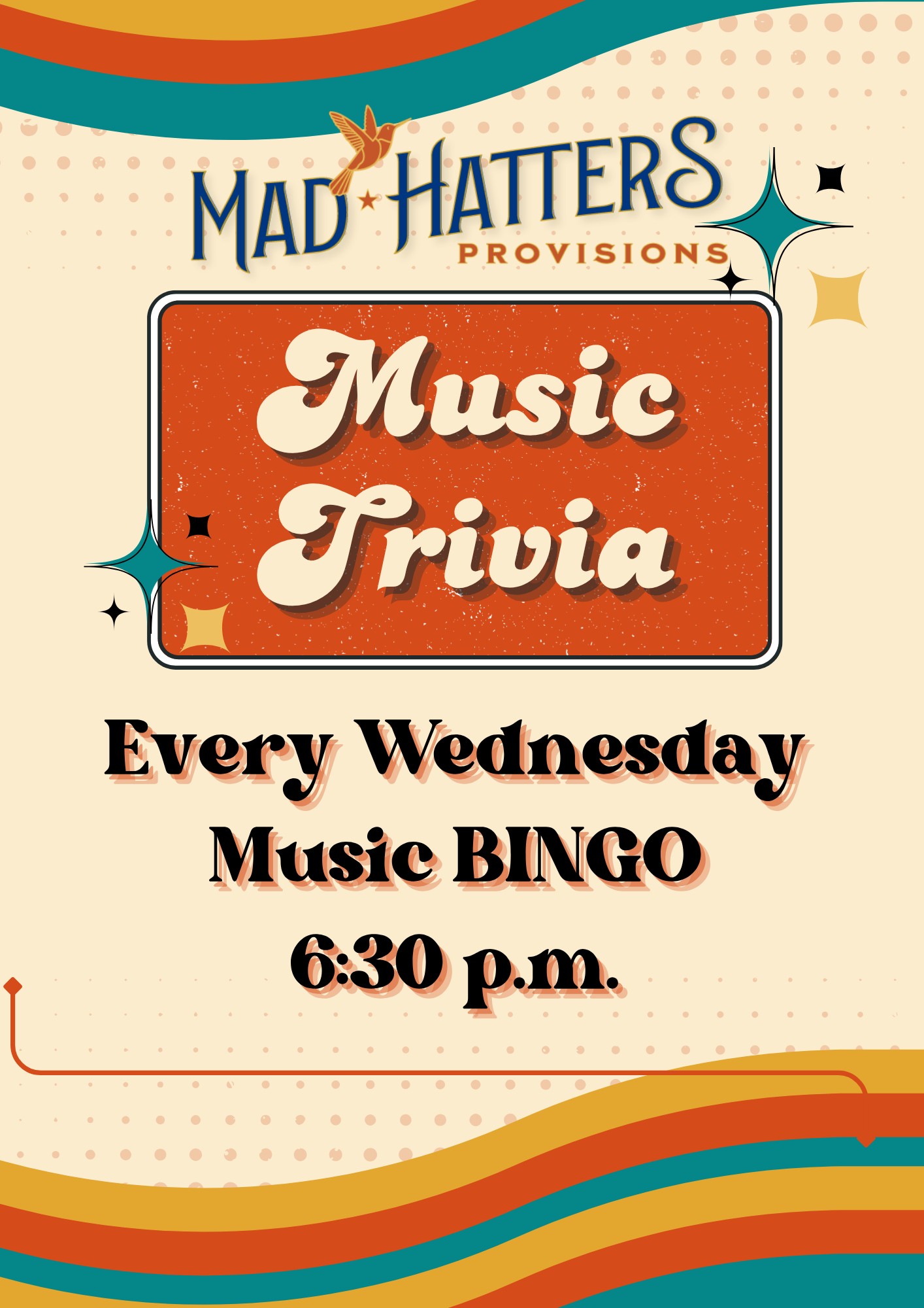 Please join us every Wednesday for Music Bingo at Mad Hatters on the Burnet Historic Square!