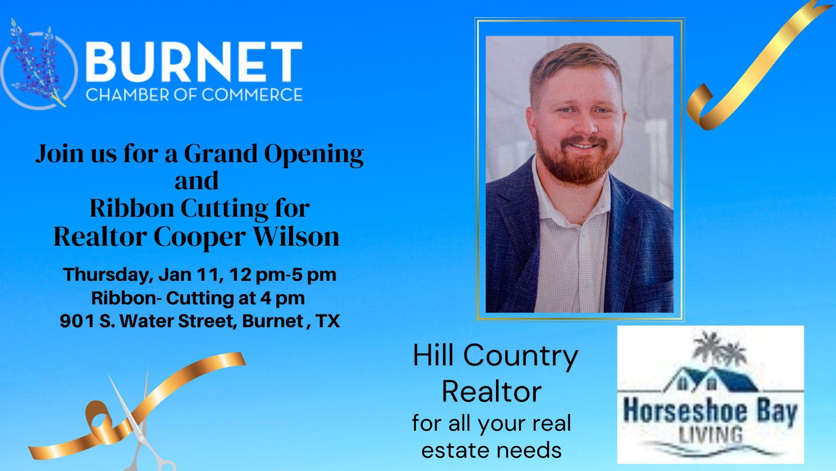 Grand Opening and Ribbon Cutting for Realtor Cooper Wilson Grand Opening From 12 PM-5 PM Ribbon- Cutting at 4 PM