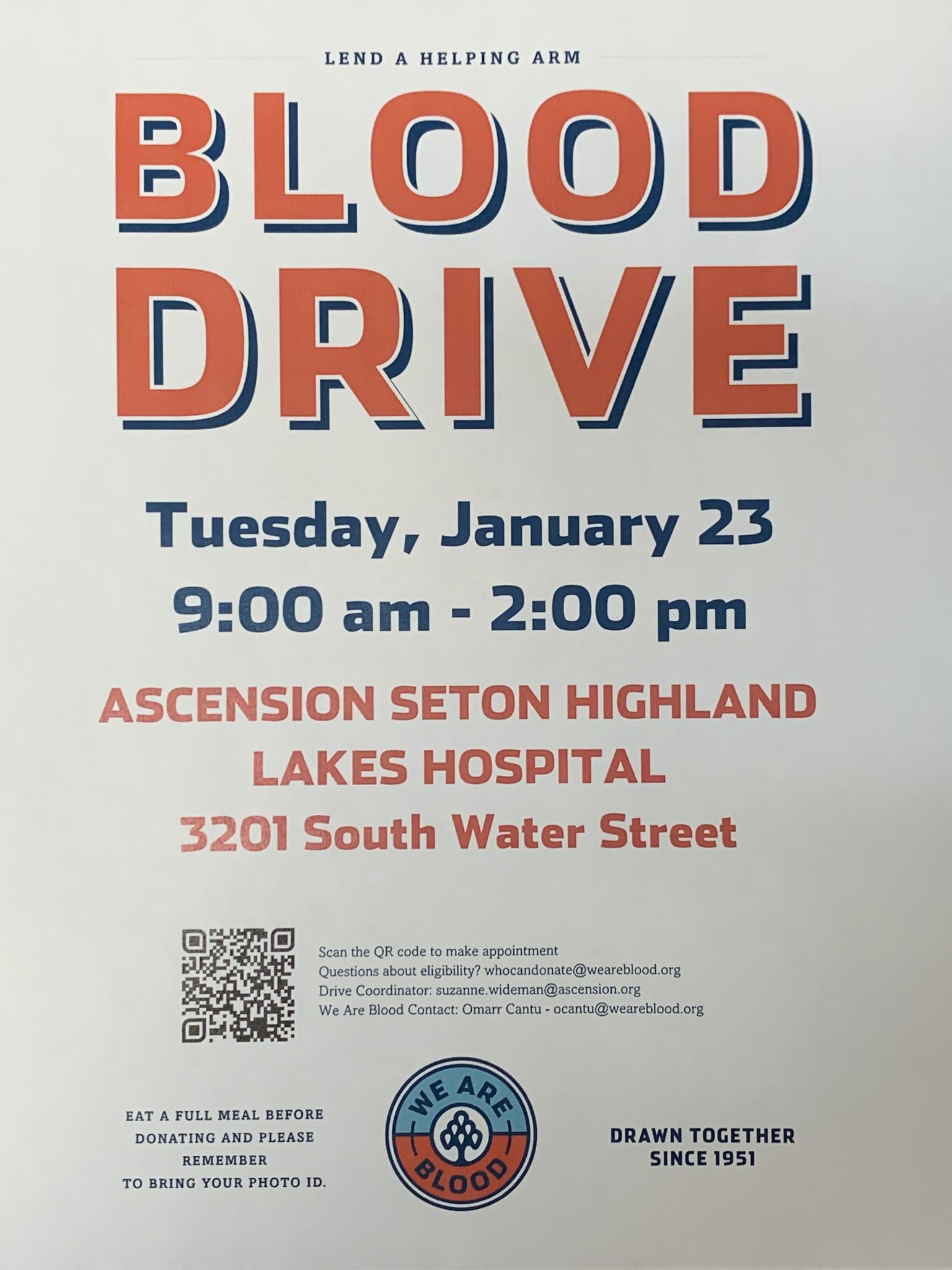 Blood Drive Tuesday, January 23rd from 9am-2pm at Ascension Seaton Highland Lakes Hospital. Location 3201 S Water St. Burnet, Tx. Eat a full meal before donating and please remember to […]