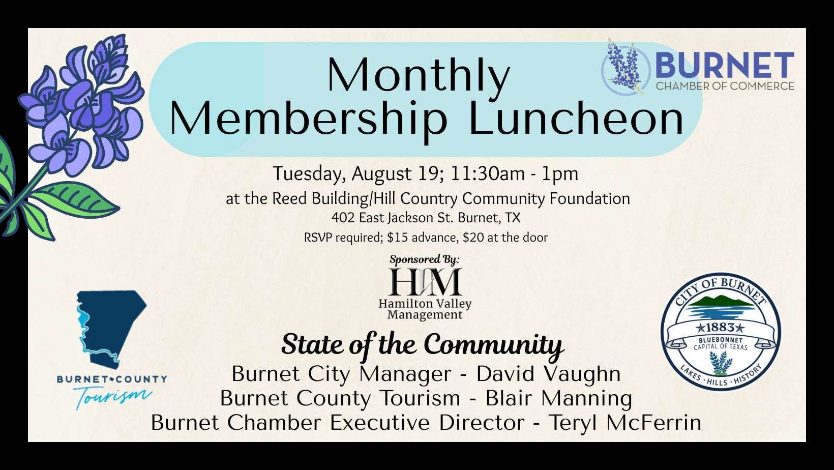 Monthly Luncheon – State of the CommunityJoin us for our August Monthly Luncheon as we hear a State of the Community update from local leaders. Teryl McFerrin, Chamber Executive Director, […]