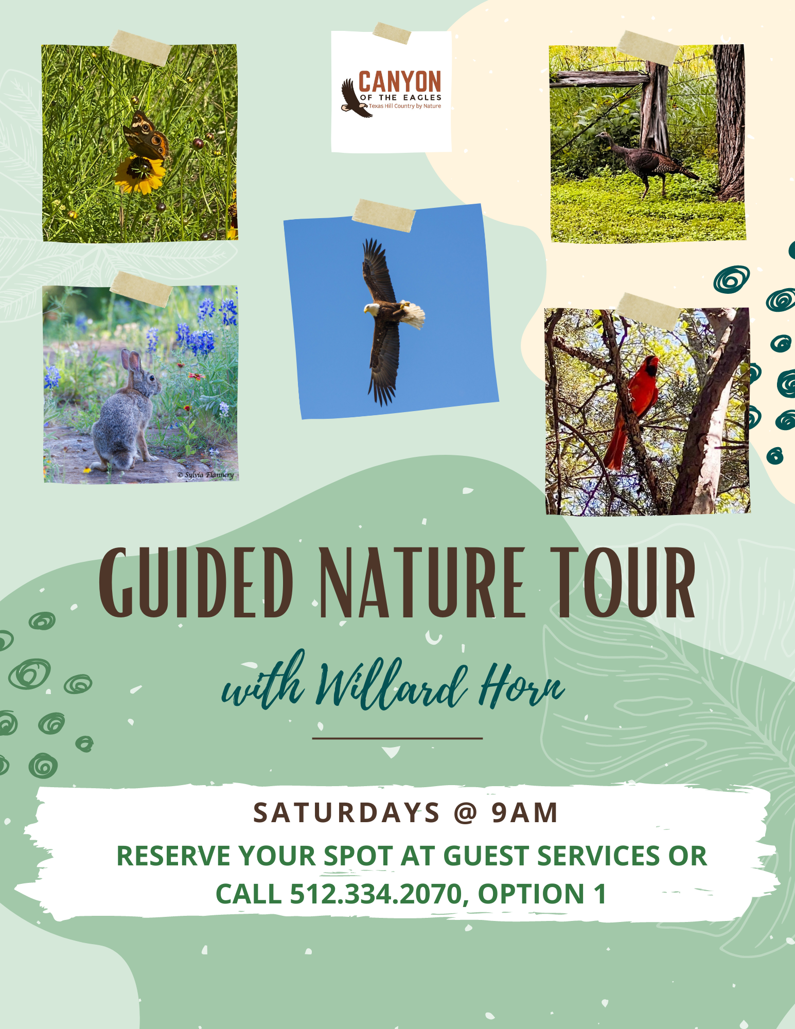 Join us on a one-hour guided nature walk with master naturalist, Willard Horn. Willard will teach you all there is to know about local flora and fauna.