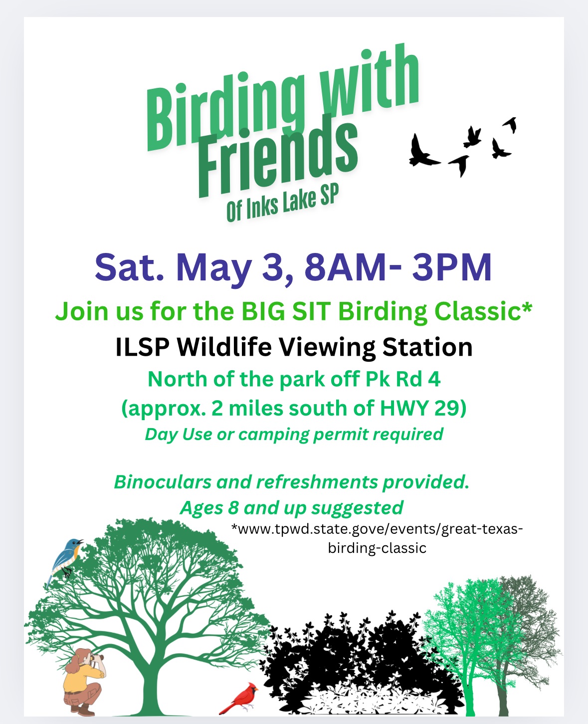 Join us for the BIG SIT Birding Classic at Inks Lake State Park Wildlife Viewing Station