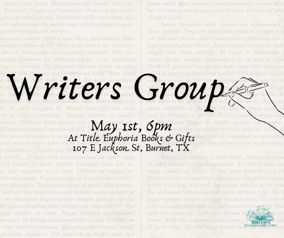 Writers of all ages and styles come together on the first Friday each month to share their work, resources, and encouragement. We look forward to seeing you! Location: Title Euphoria Books & Gifts (107 E Jackson St, Burnet, TX 78611) Time: 6:00-7:00pm